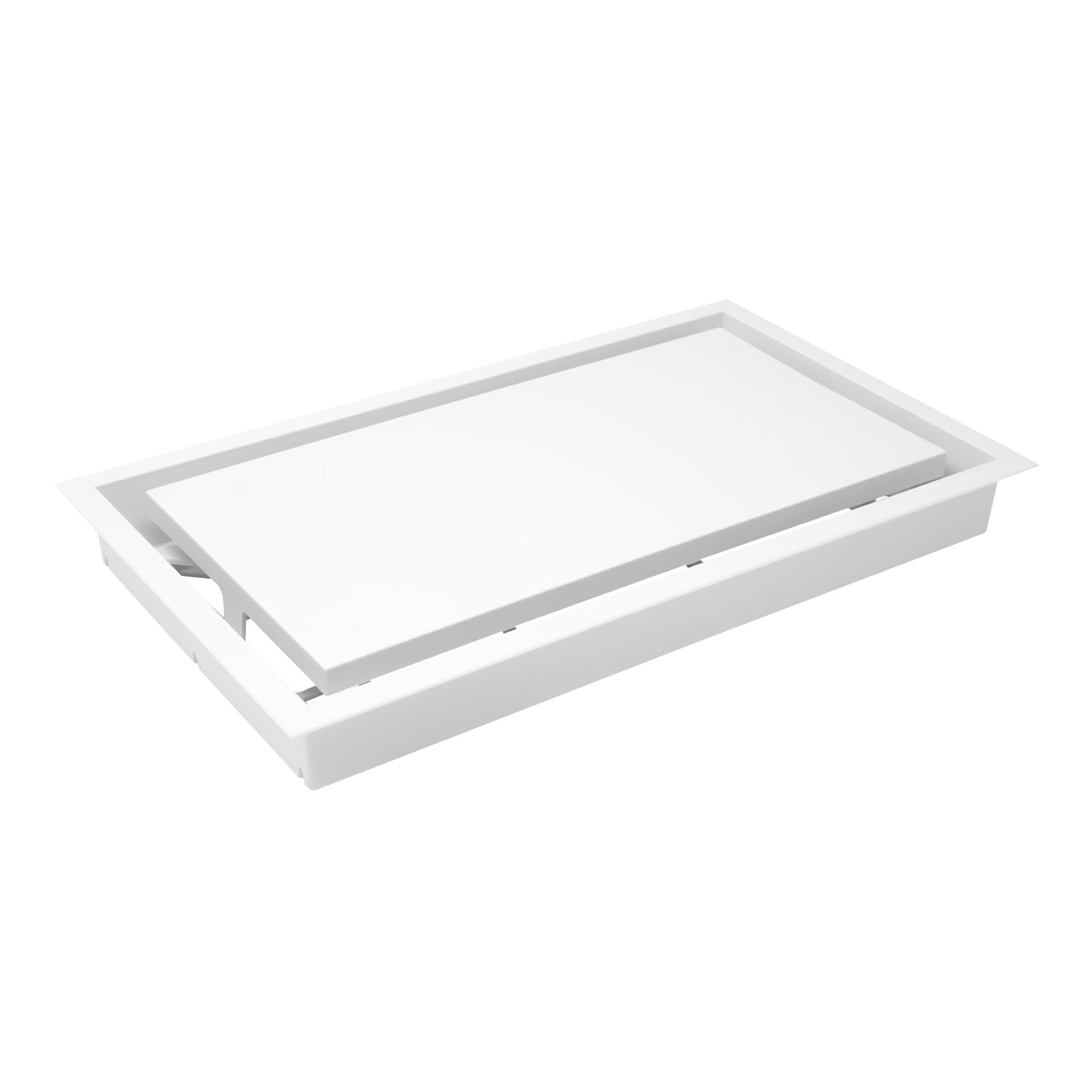 The minimalist drop-in wall & ceiling return vent. Super-easy, DIY-friendly, drop-in install lays on top of the surface, no mudding required.