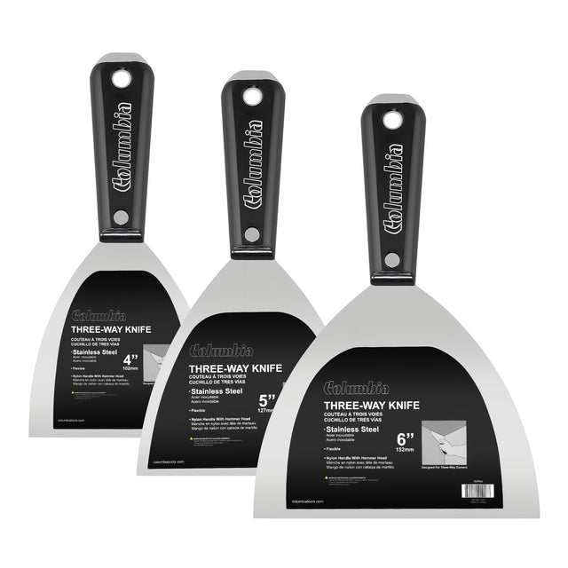 Fabricados teniendo en cuenta el lugar de trabajo y diseñados para brindar precisión, los cuchillos de tres vías de Columbia lo ayudan a terminar más rápido, con menos retoques y menos frustración.